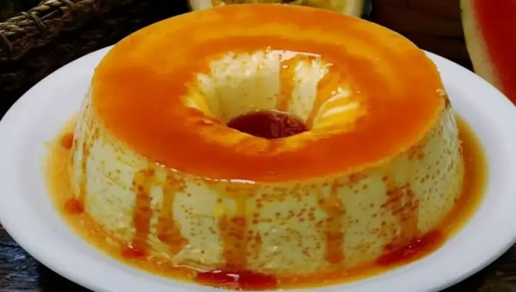 E após, coloque na forma reservada, leve para assar em banho maria por 50 a 60 minutos e depois retire. E para finalizar, leve à geladeira para gelar, retire da forma e pode servir.